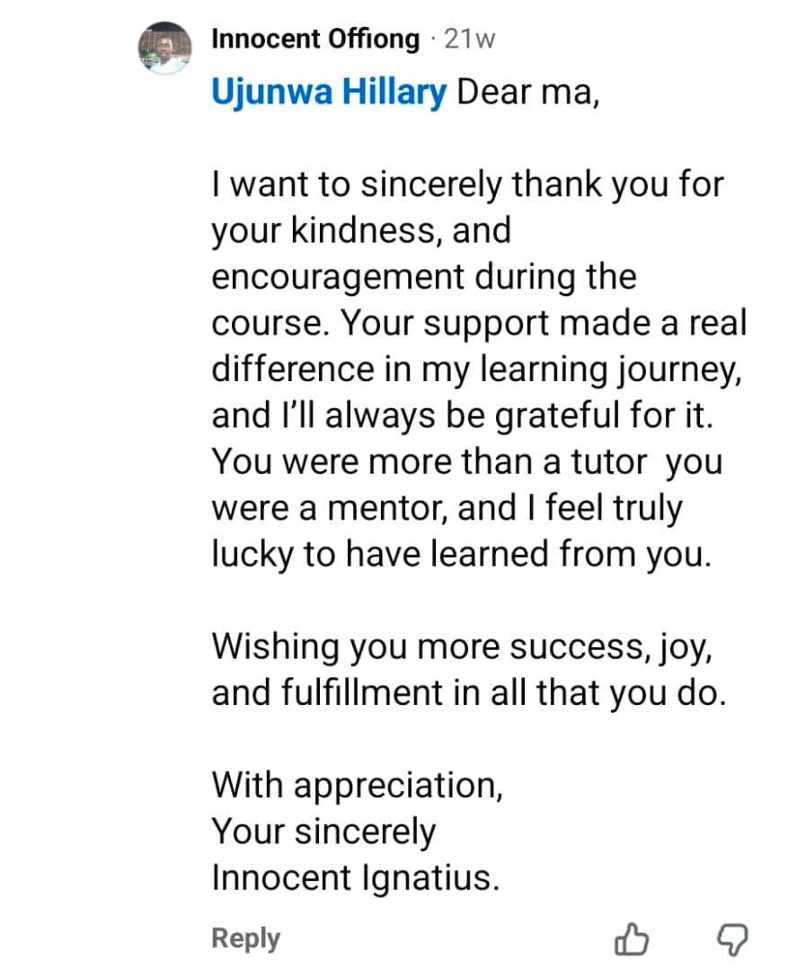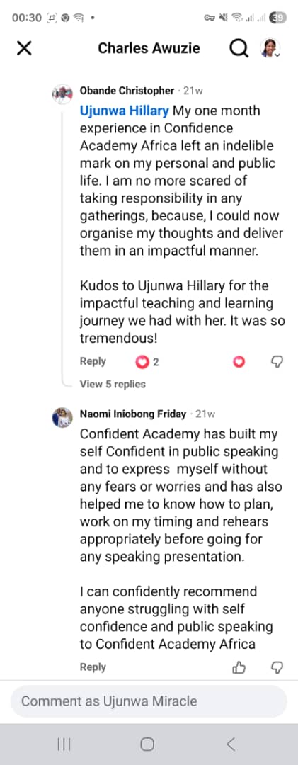 Some of our testimonials mention Ujunwa Hillary — which was the former brand name of our lead coach, who now goes by Ujunwa Miracle. The coach is the same, the impact is even greater, and the results speak for themselves.